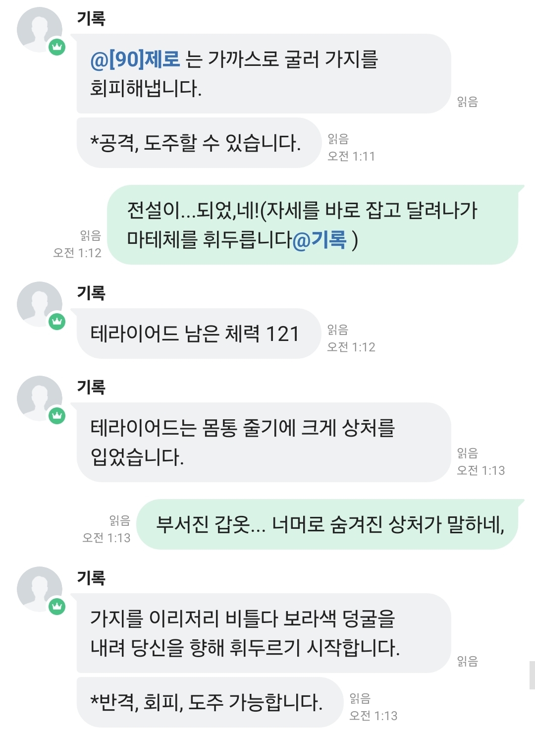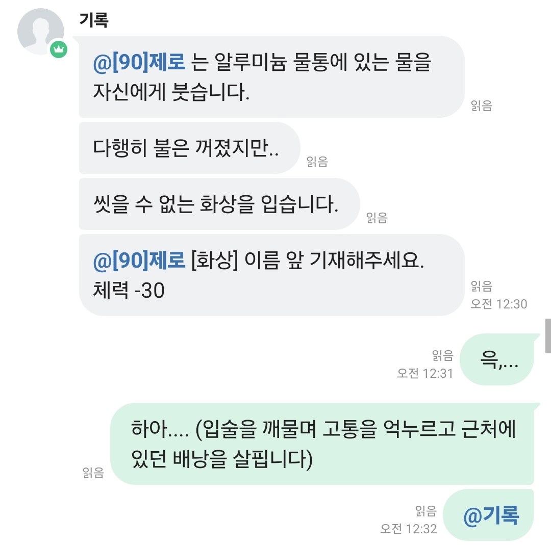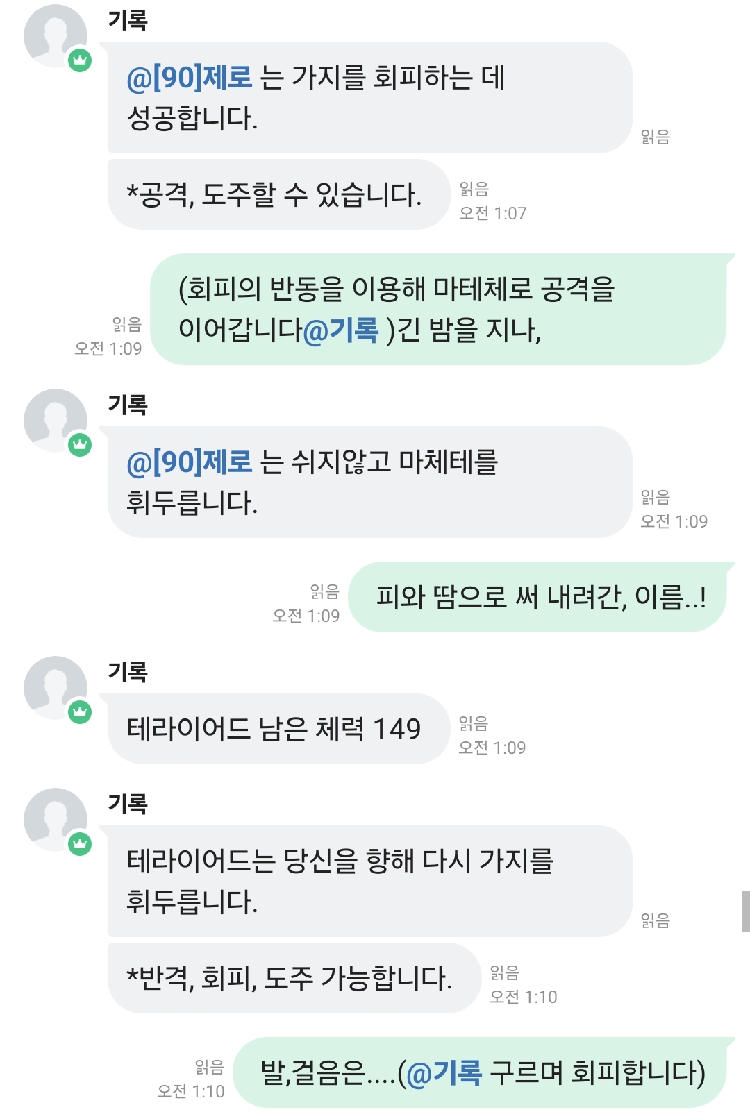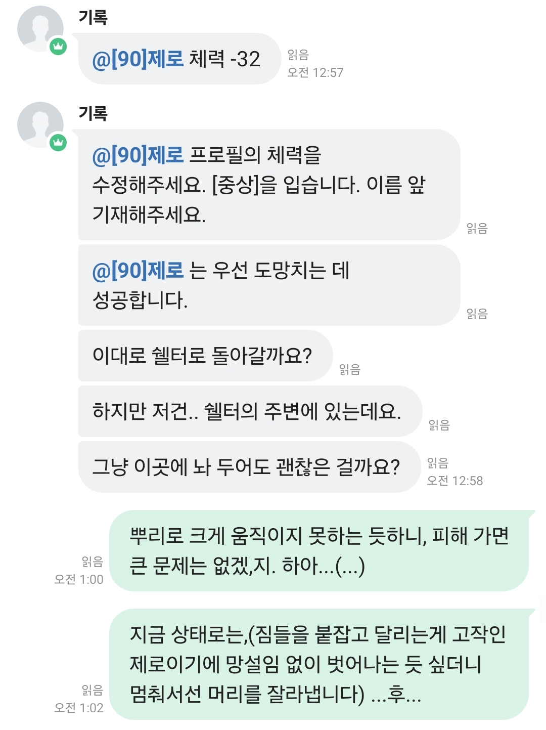 사이사이 제로 체력 수치만...작성해 두었습니다!