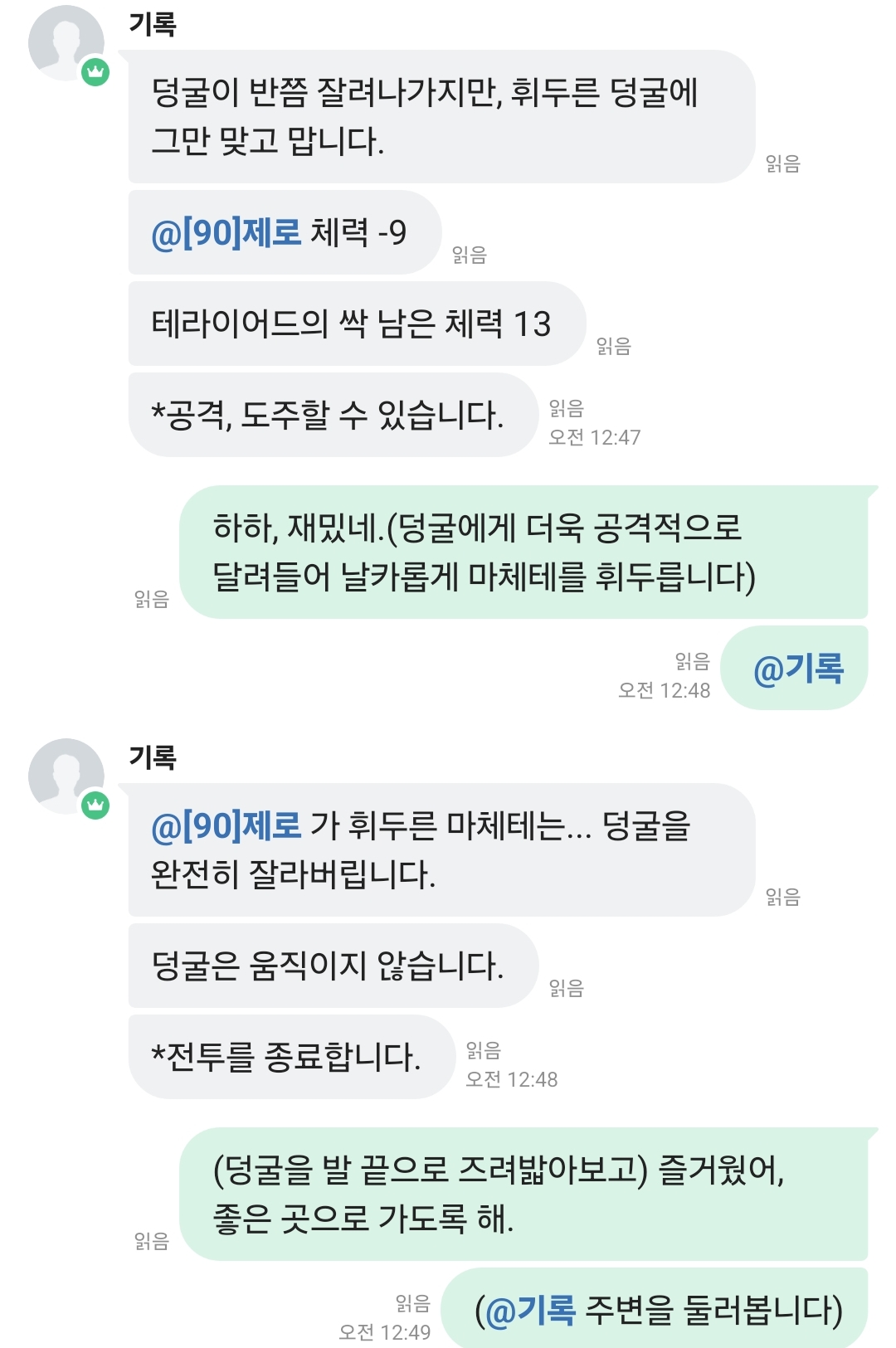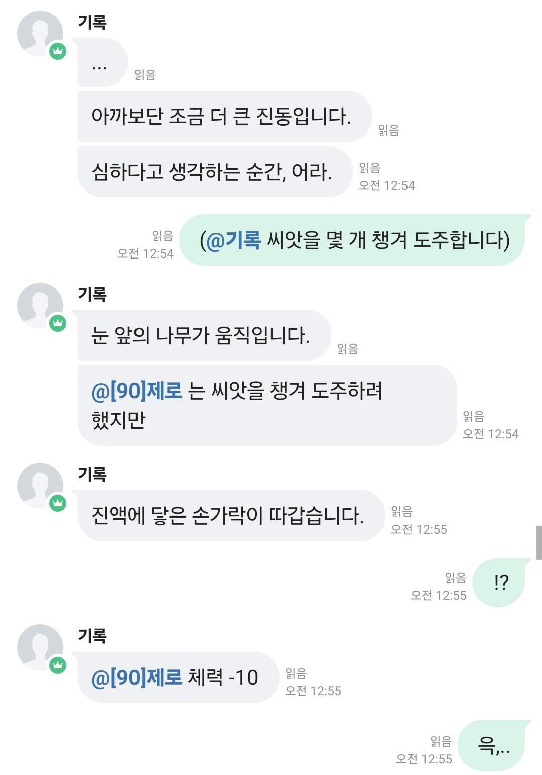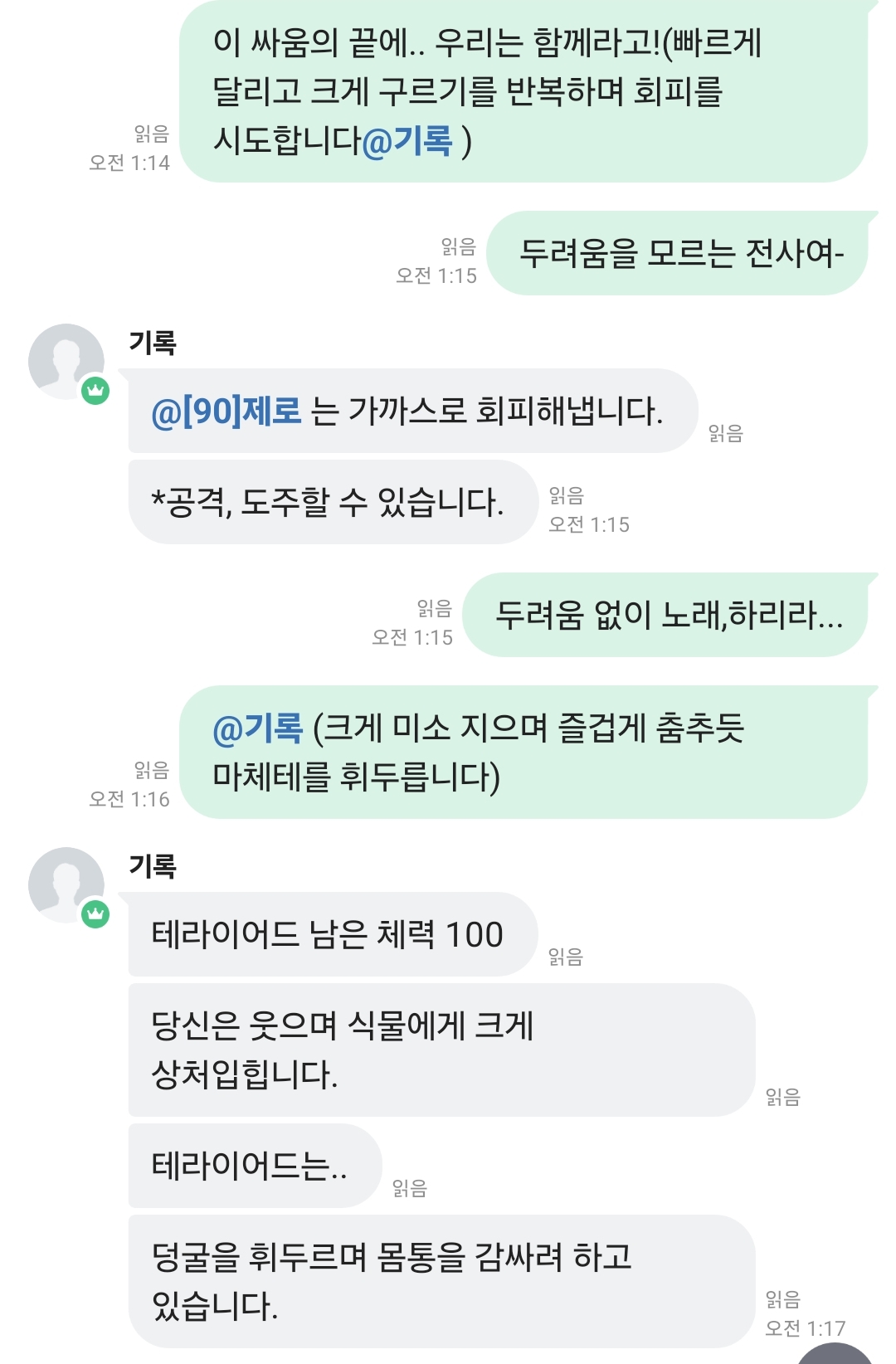 사이사이 제로 체력 수치만...작성해 두었습니다!