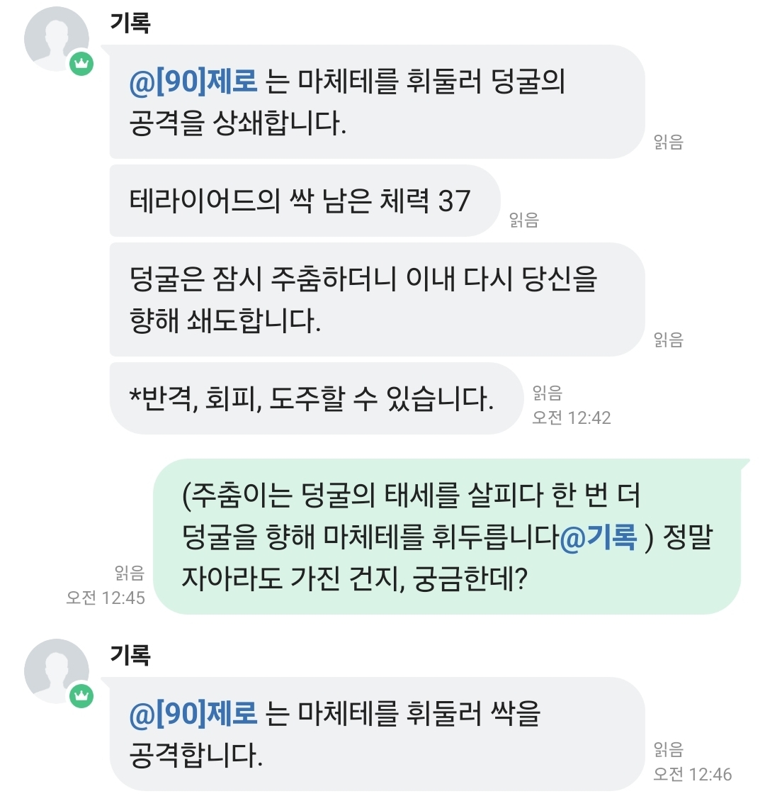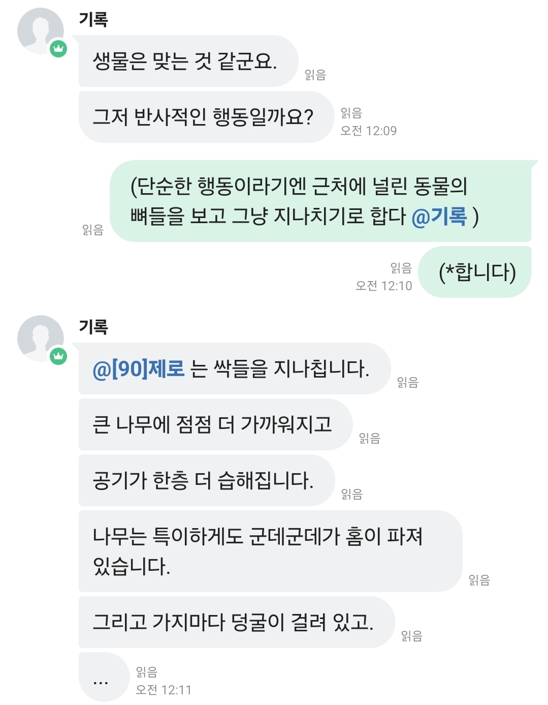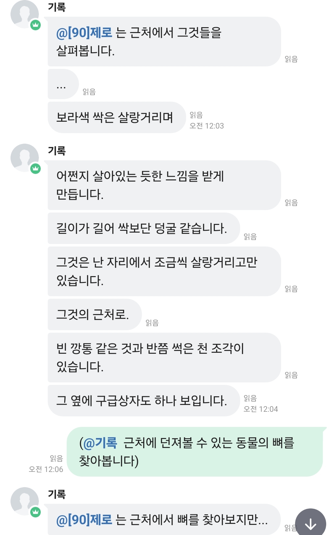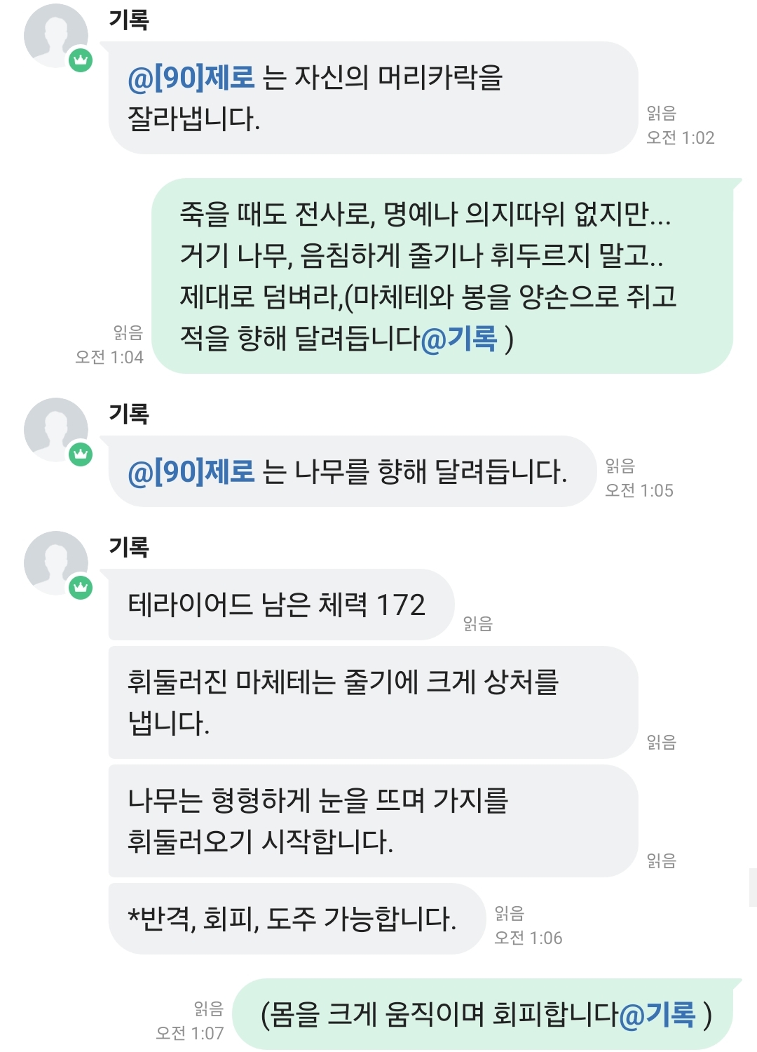 사이사이 제로 체력 수치만...작성해 두었습니다!